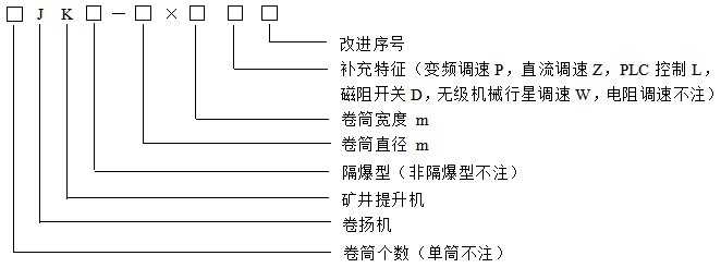 4. JK型礦井提升機(jī)型號(hào)表示方法: