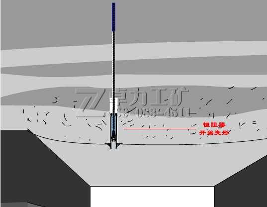 恒阻器和錨桿(索)配套用于巷道支護,恒阻器與和錨桿(索)共同組成完整的支護體,支護體能夠在恒阻的情況下發生拉伸變形,可以充分適應圍巖大變形對支護桿體延伸量的要求,解決了傳統錨桿(索)支護技術不能適應圍巖非線性大變形破壞特征而造成的支護失效問題。