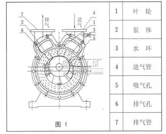 如此葉輪每轉(zhuǎn)動(dòng)周,葉片間的空間容枳改變一次,每個(gè)葉片間的水好象活塞一樣往復(fù)一次,泵就連續(xù)不斷地抽吸氣體。