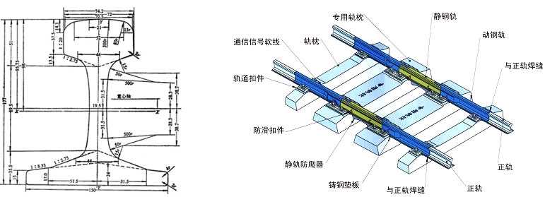 為了適應道岔、特大橋和無縫線路等結(jié)構(gòu)的需要,我國鐵路還采用了特種斷面(與中軸線不對稱工字型)鋼軌。