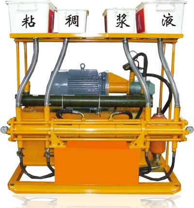 2BYN10/45-18.5型粘稠雙液注漿泵,適合高壓力、大排量注漿封堵工程。2BYN泵是低沖次,大推力的液壓往復泵,雙缸單作用,該泵利用工作介質(漿液,油液)傳遞壓力信號,組成閉環控制性能。結構簡單,調控及時準確,無超壓問題。該泵可以無級調節排漿量及排漿壓力?勺我簼{、雙液漿以及化學漿?梢缘构噙M漿,注稠漿或夾顆粒漿。