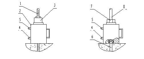 3 操作步驟ZL-1.5T/3T/5T型系列錨桿拉力計結構見圖1。![]() 1儲油筒 2注油口 3壓把 4卸荷閥 5數顯壓力表 6高壓油管 7快速接頭8 液壓缸 圖1 安裝圖 操作程序請按以下步驟進行: 1.檢查油量 如液壓缸活塞沒有完全縮回到缸體內時,應首先通過油管連接至手動泵,逆時針方向擰松泵體上的卸荷閥,使液壓缸中的液壓油排回到手動泵儲油筒中。 擰開注油口蓋,檢查油量,如油不滿(儲油筒中應留有約1/5空間),可加注N32號耐磨液壓油。 2.排氣 液壓系統組裝好后,儲油筒、油管及液壓缸中常混有空氣,為使液壓系統正常,這些空氣必須排掉。方法是擰松注油口蓋,以便儲油筒內空氣排出。將手動泵放在比液壓缸稍高的地方,順時擰緊卸荷閥,壓手動泵,使液壓缸活塞伸出至最大行程,再打開卸荷閥,使活塞縮回,連續幾次即可。 3.檢測錨桿 按圖2所示,將錨桿拉力計與被測錨桿連接好,如錨桿為螺紋鋼筋,可參照圖A連接。如錨桿為圓鋼外露部分有螺紋,可參照圖B連接。本公司生產的MJ—1型φ6~φ40不同規格的15種錨具及各種規格的拉缸及轉換接頭可根據實際需要選購。 將卸荷閥順時擰緊,慢壓手動泵使活塞桿伸出約10 mm,其目的是避免安裝錨具敲打楔片時損傷活塞桿,也給退錨帶來方便。安裝與錨桿相配套的錨具或螺母并固定可靠,打開壓力表開關,均勻用力壓手動泵,壓力增加至最大值,停止加壓。記錄或儲存壓力表數據后將電源關閉。 圖1中擰松卸荷閥,活塞可自動縮回至液壓缸內。在圖2 A所示連接狀態需拆卸時,可敲打錨具外殼,使夾片脫離外殼,然后卸下液壓缸。在圖2 B所示連接狀態需拆卸時,可先將螺母退下,然后卸下液壓缸。 4.壓力表操作方法 1.壓力檢測 按動開關電源開關,儀表開始工作。按關機鍵,儀表停止工作。按背光鍵,顯示屏背光開啟,再按此鍵,剛關閉背光。 按動存儲鍵,在顯示屏左下方顯示一個小三角形,指示當前為讀取存儲模式。在讀取存儲模式下,再按此鍵,顯示后一個存儲值,按下清零鍵,則顯示前一個存儲數值,存儲和清零一起實現了存儲值的前后翻閱,關閉電源后,存儲值全部清零。按峰值鍵,顯示屏右上角顯示一個小三角形,指示當前為峰值模式,再按此鍵,則退出峰值鍵。 工作完成后點動開關鍵,顯示屏關閉、儀表斷電。 2.用戶調整 按背光鍵五秒鐘,進入用戶壓力調整模式,此時按存儲鍵,顯示屏數值減小,按清零鍵,顯示屏數值增大,調整好后按峰值鍵確認,當顯示壓力比實際壓力小時,則數值要加大,當顯示壓力比實際壓力大時,則數值要減小。 3.壓力校正 在電源關閉狀態下,同時按住“存儲”和“峰值”鍵,然后開機,顯示屏顯示――:――,這時按“清零”鍵數字加,按“存儲”鍵移位,輸入密碼“55AA”,然后按“峰值”鍵確認,開始進入校正程序。這時顯示屏顯示“0000”,存入當時零位,然后再按“峰值”鍵,這是顯示屏顯示“050.0”,然后壓力壓到50kN,再按“峰值”鍵確認,這是顯示屏顯示“100.0”,然后壓力壓到100kN,再按“峰值”鍵確認,這時顯示屏顯示“150.0”,再按峰值鍵確認,壓力壓到對應的kN值,一直按峰值10秒,標定結束。 注:儀器出廠前均已標定,如在使用過程中發生數據清除等現象導致數據不準的情況,請與我公司售后聯系重新標定事宜。若有標準壓力源可自行標定,否則不建議用戶自行標定。 ![]() A B 1 被測錨桿(螺紋鋼) 2液壓缸 3 錨具 4 進油口 (加載時) 5出油口(加載時) 6 被測錨桿(圓鋼) 7螺母 8加長桿 圖2 工作圖 5 常見故障及排除方法