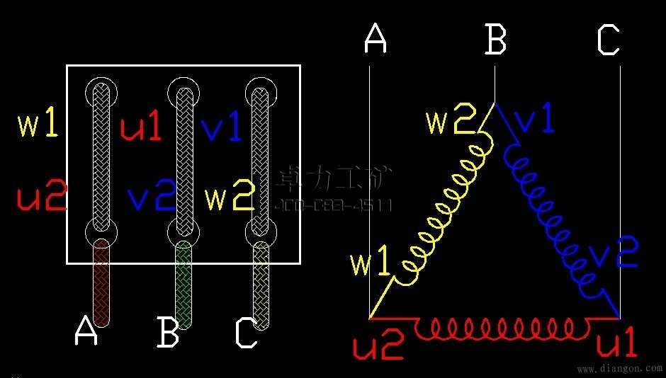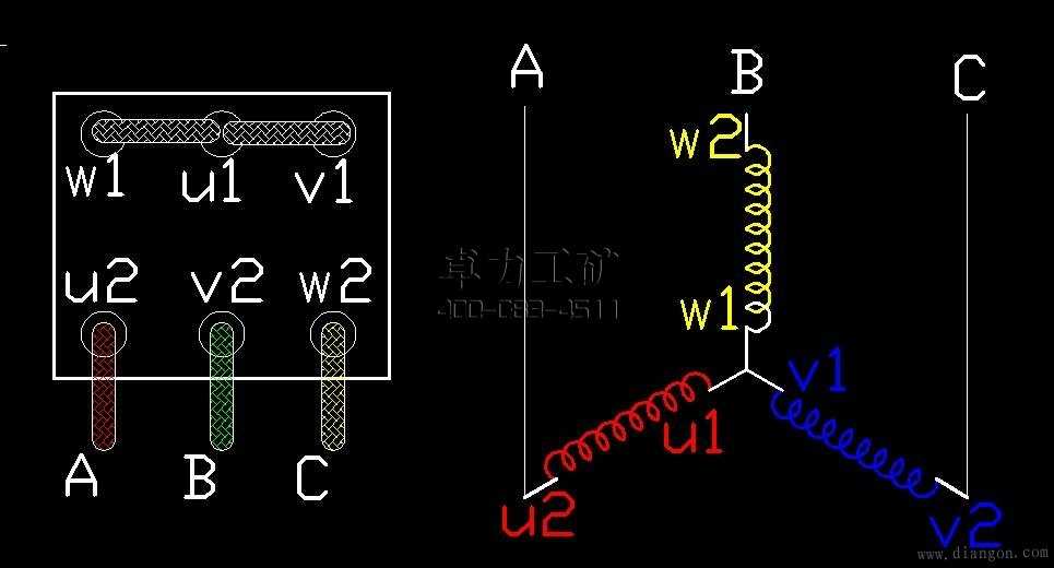 三相異步電動機接線圖 三相異步電動機接線圖,三相異步電動機接線,三相電動機接線圖,三相電機接線圖,電動機接線圖. 三相電動機接線盒 ![]() 三相異步電動機y接時,接線盒里,連接片的連接方式 ![]() 三相異步電動機角接時,接線盒連接片的連接方式 ![]() 學習三相異步電動機的兩種接法 今天在現場學了點三相異步電機的基本接法:星型接法和三角接法。雖然是些很簡單的東,但勉。 ![]() 星型接法 ![]() 三角接法 星型接法和三角接法的區別: 在承受相同電壓及相同線徑的繞組線圈中,星型接法比三角型接法每相匝數少根號3倍(1.732倍),功率也小根號3倍。成品電機的接法已固定為承受電壓380V,一般不適宜更改。只有三相電壓級別與正常380V不同時才改變接法,如三相電壓220V級別時,原三相電壓380V星型接法改為三角型接法就能適用;如三相電壓660V級別時,原三相電壓380V三角型接法改為星型接法就能適用,其功率不變。一般小功率電機是星型接法,大功率的是三角接法。額定電壓下,應該使用三角形連接的電動機,如果改成星形連接,則屬于降壓運行,電動機功率減小,啟動電流也減少。額定電壓下,應該使用星形連接的電動機,如果改成三角形連接,則屬于超壓運行,是不允許的。大功率電機(三角型接法)起動時的電流很大,為了減少起動電流對線路的沖擊,一般采用降壓起動,原三角型接法運行改為星型接法起動就是其中一種方法,星型接法起動后轉換回三角型接法運行。 ![]() 【打印本頁】