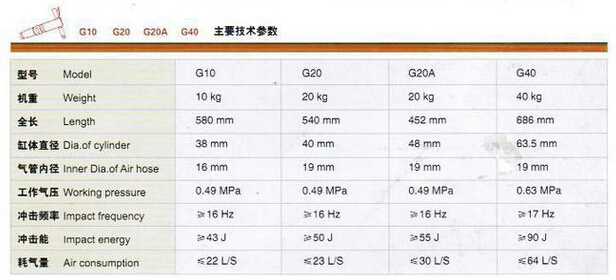 G10.G20.G20A.G40風鎬型號技術參數對照表 ![]() ![]() 【打印本頁】