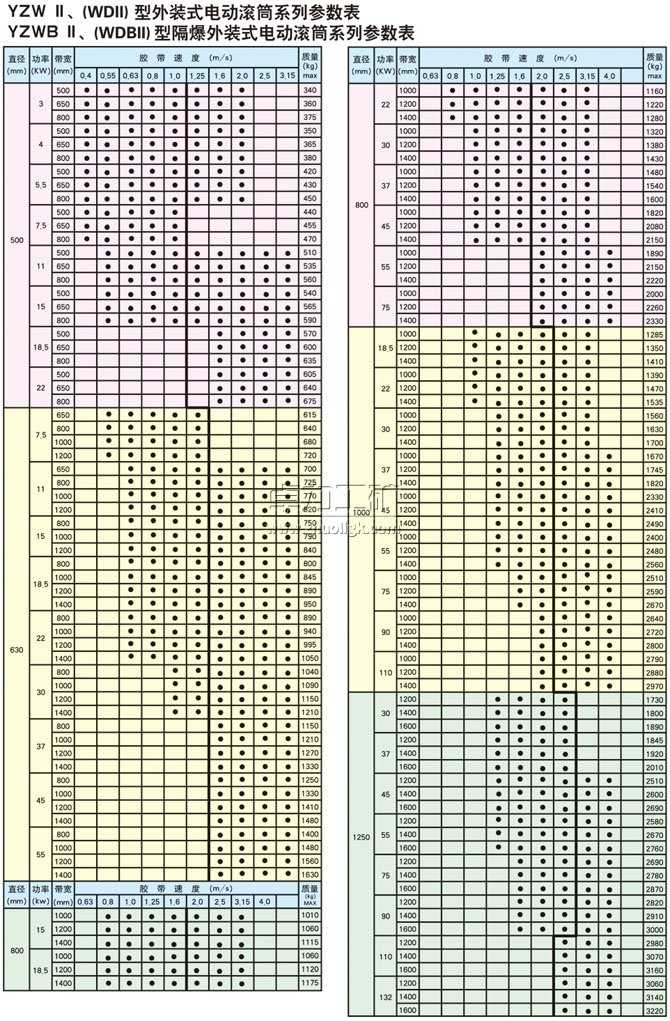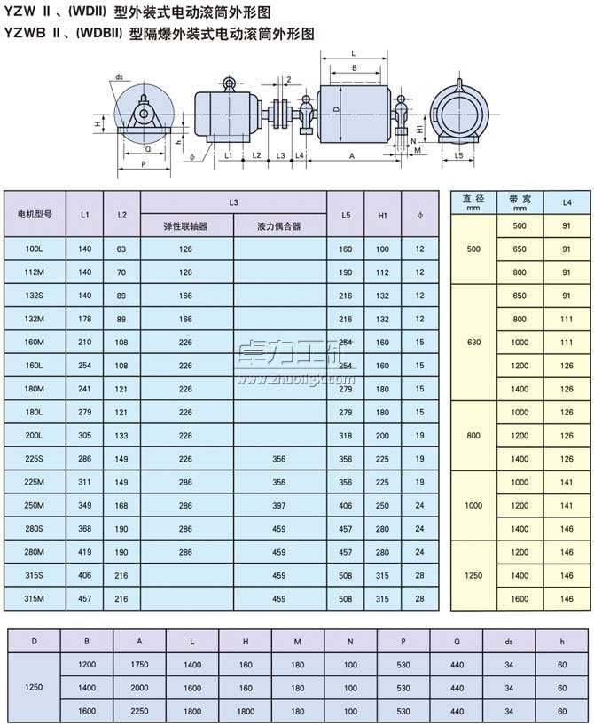 YZWII型外裝式 YZWBII型隔爆外裝式電動(dòng)滾筒外形尺寸表