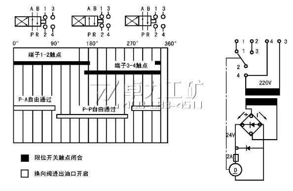 24EJF-P型二位四通換向閥(40MPa)主要由直流電機、限位開關、換向閥體,整流變壓器裝置等元件安裝于同一底板上并置于防護罩殼內組成。