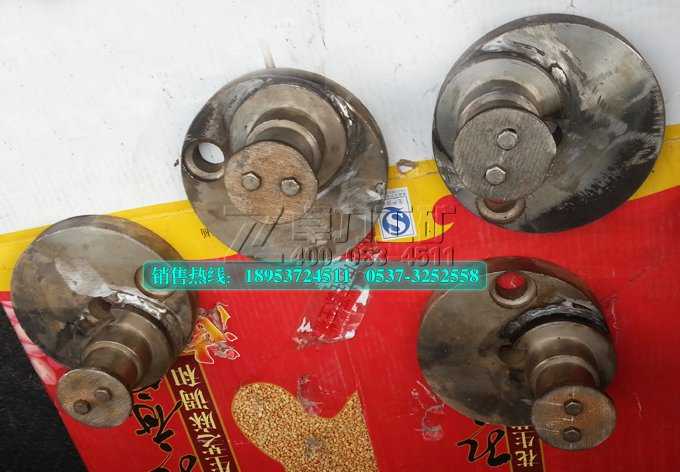 3.依據(jù)卸料要求調節(jié)生產(chǎn)率時,將曲柄部位銷軸拔出,松動螺母,轉動曲柄殼的位置“1、2、3、4”選擇固定,將銷軸插入,聯(lián)結曲柄與曲柄與曲柄殼,緊固銷軸和螺母,調整完畢后再開車 。