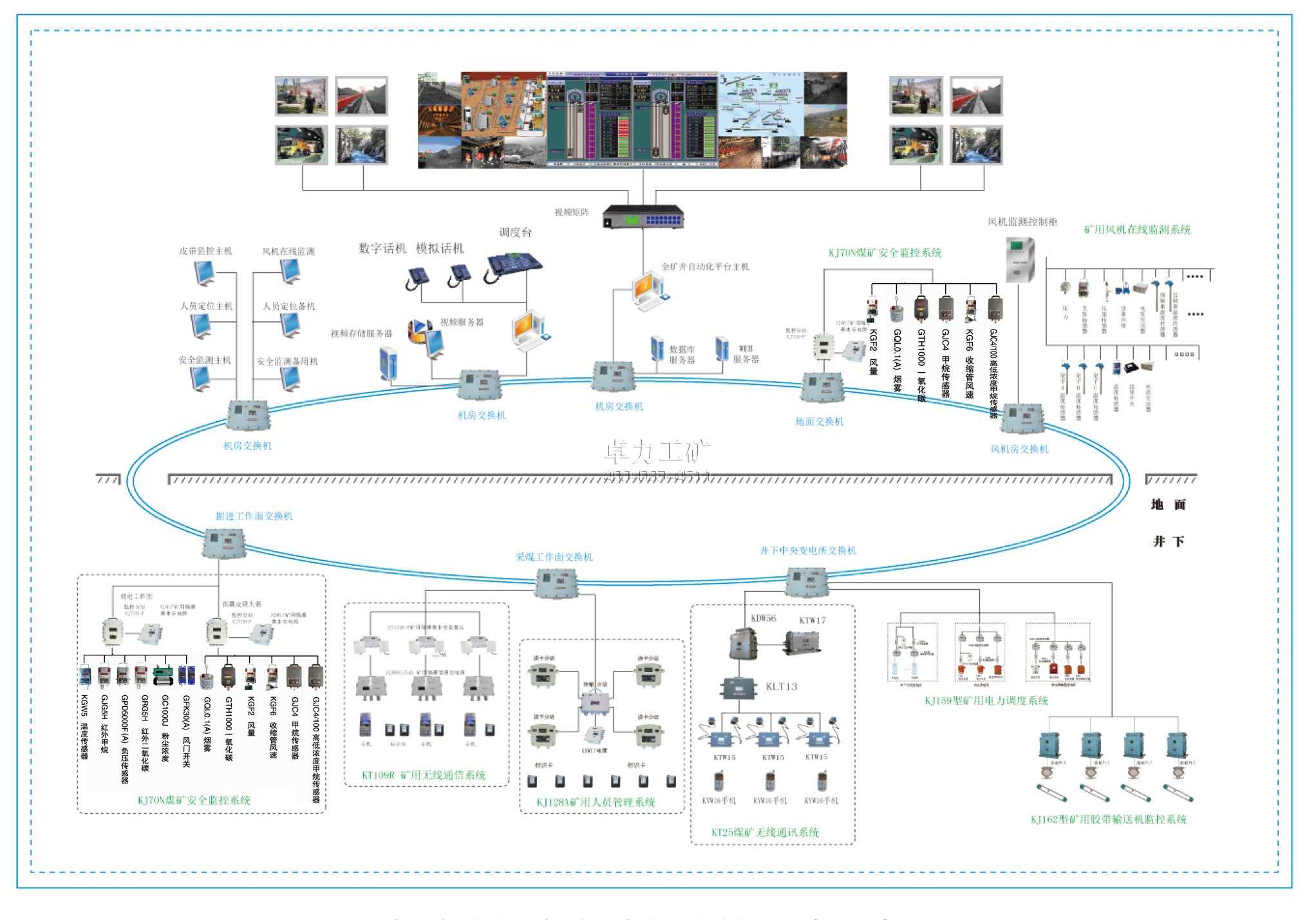 全礦井綜合自動化系統,是一個1000Mbps冗余工業以太網井上、下自動化控制網絡平臺,是以工業以太環網為核心,整合礦井的各項自動控制系統,通過防火墻與礦級管理系統組成高速統一的整體網絡結構,實現了全礦井的管控一體化。 整個系統分為信息層、控制層、和設備層三層體系結構。控制層采用工業以太環網,設備層采用現場總線,保證了現場子系統的實時性,實現了井上、下皮帶運輸、通風、排水、井下供電等井下主要安全生產環節和裝備運行狀況的實時監測和集中、遠程控制,有效地提高了礦井生產自動化和管理現代化水平。實現全礦井的統一管理與數據共享。