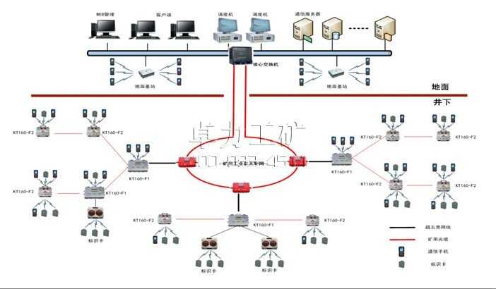 KT160礦用無線通信系統(tǒng)(以下簡稱“KT160系統(tǒng)”),是適用于對煤礦井下和井上的手機(jī)進(jìn)行監(jiān)控與管理的綜合性系統(tǒng)。該系統(tǒng)通過光纖及網(wǎng)絡(luò)交換機(jī)完成地面服務(wù)器與井下設(shè)備的數(shù)據(jù)交換,通過快速的數(shù)據(jù)傳輸實現(xiàn)將井下或井上的不同基站下的手機(jī)的互聯(lián)互通,即可節(jié)約資源又方便管理,該系統(tǒng)適用于各類大、中、小型礦井。本系統(tǒng)采用統(tǒng)一標(biāo)準(zhǔn)的工業(yè)以太網(wǎng)絡(luò)架構(gòu),為人員位置監(jiān)測與管理、數(shù)字化視頻監(jiān)控、各種井下傳感器(例如:瓦斯)數(shù)據(jù)的統(tǒng)一采集與綜合處理提供了一個共用的網(wǎng)絡(luò)平臺,實現(xiàn)語音、視頻、數(shù)據(jù)的三網(wǎng)合一,為生產(chǎn)調(diào)度、應(yīng)急救援、安全監(jiān)控與督查提供了科學(xué)手段。