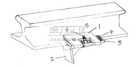 焊接型防爬器由軌卡、鎖軌扣、螺栓、軌擋和承力板所組成。