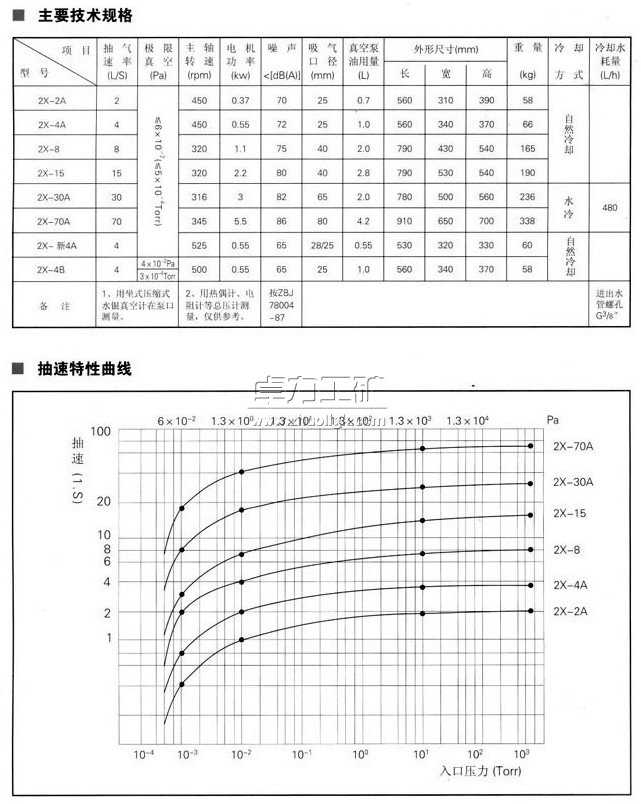 2.泵在環境溫度540范圍內,進氣口壓強小于1.3X103帕的條件下允許長期連續運轉,被抽氣體相對濕度大于90%時,應開氣鎮閥。