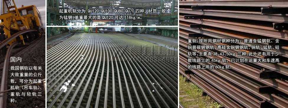 (2)重型鋼軌:每米公稱重量大于30kg的鋼軌。火車鋼軌和起重機軌都屬重軌。