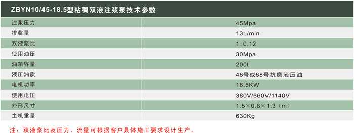2BYN10/45-18.5型粘稠雙液注漿泵,適合高壓力、大排量注漿封堵工程。2BYN泵是低沖次,大推力的液壓往復泵,雙缸單作用,該泵利用工作介質(漿液,油液)傳遞壓力信號,組成閉環控制性能。結構簡單,調控及時準確,無超壓問題。該泵可以無級調節排漿量及排漿壓力?勺我簼{、雙液漿以及化學漿?梢缘构噙M漿,注稠漿或夾顆粒漿。