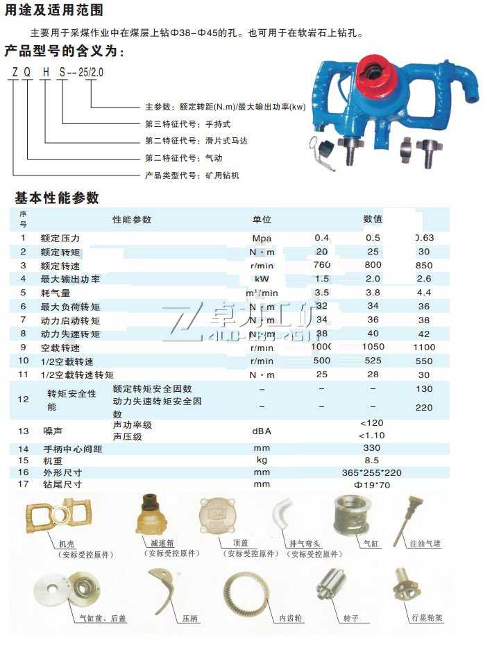 ZQHS系列氣動手持式鉆機|ZQHS-25/2.0氣動手持式鉆機|ZQS-30/2.5氣動手持式鉆機|ZQHS-35/2.0氣動手持式鉆機|ZQHS-40/2.1氣動手持式鉆機|ZQHS-45/2.3C大轉矩手持沖水式沖擊式氣動鉆機